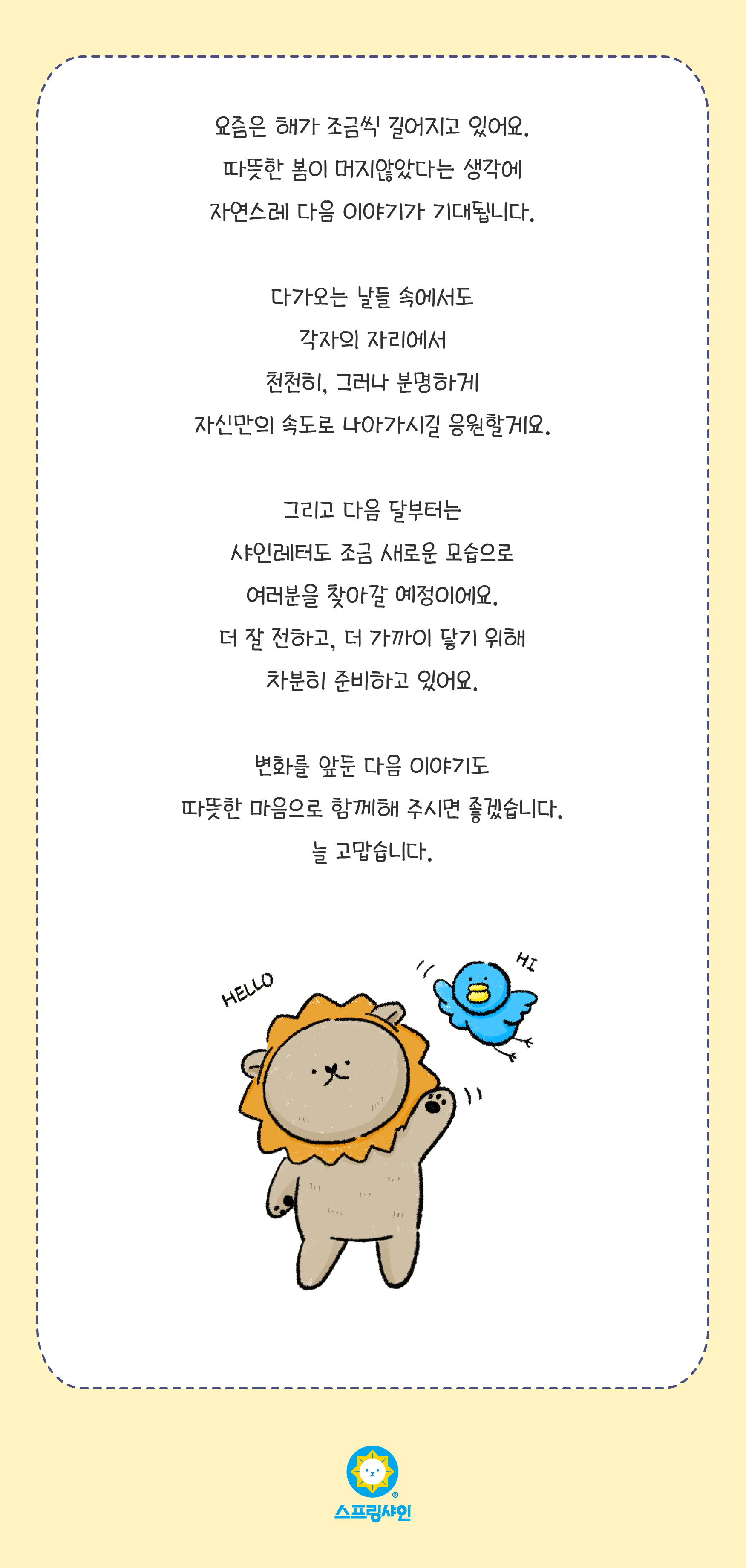 [스프링샤인]봄을 기다리며 전하는 소식